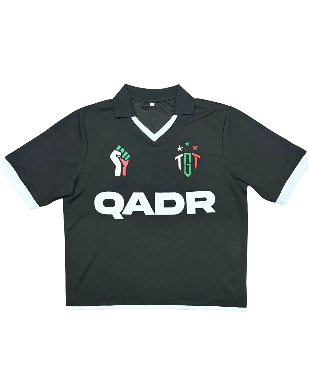The TGT Palestine Jersey in black speaks volumes with minimal effort. Built with a loose, slightly boxy fit, it’s designed to stand out. Size up for a more oversized, street-led silhouette. Made to represent, always.